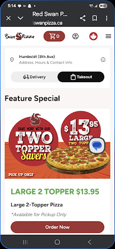 So were clear i have ordered from Red Swan all over from winnipeg to Humboldt. Always great so good in fact that Iām considering this a one off. Saturday I ordered large pizza nachos and wings will start with the pizza.