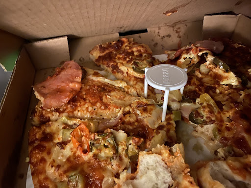 The pizza though was so undercooked that my fingers went into itThe toppings weāre burnt and stuck to the top of the inside of the box.