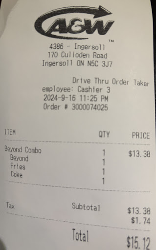 If you’re thinking about grabbing food from the A&W in Ingersoll, do yourself a favor and don’t. My experience here was beyond infuriating, and I wouldn’t wish it on anyone.