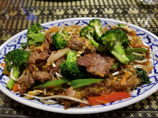I had the spicy Thai noodle with beef (attached photo) and my sweetheart had the cashew chicken. I love spicy food and my dish certainly didn't disappoint. The waitress made sure to check as I ordered that I liked spicy food and would be OK with the heat (this could have saved someone who didn't know). The heat in the dish wasn't just a burning/chemical heat, it was a flavourful heat built up with what I assume were chilies. The vegetables in the dish were all fresh and cooked spot on to retain a nice texture (kudos to the kitchen staff). The coconut rice that was ordered by my love was really nice and she enjoyed mixing it with her main dish.