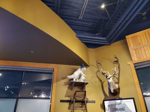 I've been going here since 2010 with friends and it's a staple in Iqaluit. They do charge a coat fee of $1, but in the winter I totally get it. Our parkas take up lots of room so be prepared with your loonie or toonie. They have two levels; top has a few pool tables that are always busy along with a Foosball Table, seating and the bathrooms. Bottom level has the DJ Booth, dance floor, bar and more seating. I always love the big leather chairs as they're soo well worn in and comfortable. The atmosphere is everything from comfortable lounge to dance club on the weekends. They serve a nice selection of drinks along with beer from the local Brewery, Nubrew. But be warned, a king can of Growers Stonefruit will set you back $11.75. I recommend sticking to Spirits and Beer on tap. Typical for everything to cost more, so ask for prices if you must. They also have a restaurant located inside and I can remember far too many wing nights here as well. They food is good, typical pub style. The place is decorated with cool locals, by that I mean local animals. For those who have never seen a Muskox, you can say hello to the one mounted inside. From wolf to Polar Bear and even the headless Arctic Hare....they all make an appearance inside. For anyone also looking for locally made items, it is normal for locals to walk around and show their work available for purchase. If you see something you like, bartering is normal. But don't push your luck, someone else might buy it before you decide that saving that $10 isn't worth it and it's too late. There are some servers who take orders but going to the bar is something quicker. Line up, wait and soon you'll be on your way to not being as thirsty. It's also normal for the line to wind it's way up the stairs on...