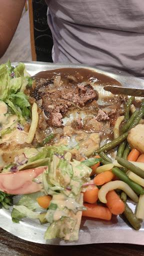 We had been to restaurants in the area and we were really satisfied with the quality, after a long day at three in the afternoon we decided to enter this place, we thought that any food could satisfy our hunger, but in reality it was not like that, the dishes They arrived in record time which made us doubt their freshness and indeed the plate of chicken wings came with fries and old rice, the wings are nothing out of this world, my partner ordered steak, which we highlighted the sauce but not the cut, well it was not a cut of meat, rather it looked like kneaded ground meat, the vegetables were hard. I had such a bad taste that I ended up vomiting in the bathroom. Clarifying that the dishes were not finished, the service was good, but I would not return to this place, they ruined a special date. and paying 60 dollars to end up vomiting in the bathroom, and not finishing the dishes was...