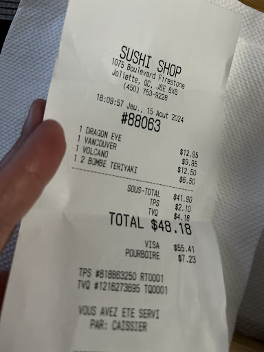 Read moreAttente incroyablement longue (25 minutes) pour une commande de 2 sortes de sushis seulement (8 mcx avocado et 5 mcx vĂ©gĂ© deluxe)âŠil ne semble pas y avoir de friteuse Ă mĂȘme le kiosque, alors mes sushis sont allĂ©s se faire frire dans un resto voisin, transportĂ©s dans une petite chaudiĂšre⊠je ne suis mĂȘme pas certaine que tout ça Ă©tait trĂšs salubre. De plus, il y avait prĂ©sence de masago (Ćufs de poisson) dans mes sushis VĂGĂS. Bref, jâai jetĂ© la moitiĂ© de mon plateau, ça fait mal au cĆur jeter de la bouffe, surtout au prix que ça coĂ»te. Je suis trĂšs déçue de...