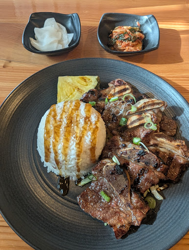 The sides were great too, all those little dishes you get with Korean BBQ – the kimchi was spicy and tangy, the pickled radish was crisp and refreshing. But those short ribs... man, they're what I'll be dreaming about.