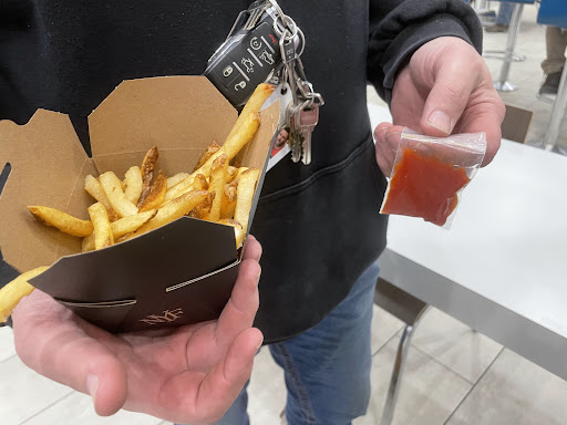 After I paid, I stood off to the side a few feet away from the counter and after about a minute of me standing there waiting for my order of fries, he yelled at me to stand at least 6 feet away from the counter without any prior warning. The yell came out of nowhere and it was loud enough that half of the food court turned around to see what was going on. I was a little upset and embarrassed at that point so I didn't argue with him and took a few steps back to comply with his "request".