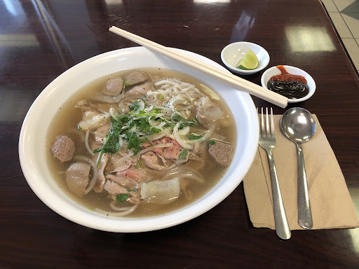My go to is always the House Special noodle soup. A traditional Viet pho with a light, sweet, mild and savory broth. Noticeable flavors of coriander, basil, and traditional spices such as anise, cinnamon, clove and fish sauce. Served with thick style vermicelli, soft pieces of tendon and cartilage, thinly sliced tripe, rare slices of loin, meatballs, and accoutrements such as cilantro, bean sprouts, white onion, lime, and hoisin/sriracha. A hearty meal for any day of the week. For a beginner’s palate I would recommend the basic beef noodle. There are many traditional vermicelli and rice dishes that I look forward to trying. The apple fritters and honey rings are always a popular treat.