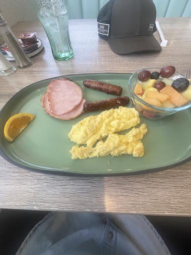 Read moreMy boyfriend and I were on our way through town and thought the ratings on this cute diner was nice, but we quickly realized after a long wait that we might not get what weâre expecting. Since there was only one other table being served, we thought the service would be quick, but we waited at least 30mins after ordering. The staff was nice but the quality of food was just not to par at all! I wanted a light breakfast and ordered the protein breakfast which was made with liquid scrambled eggs (the waitress told me), 2 meat options and toast (picture attached). I decided to get fruit instead of toast and Iâm glad I did because I felt that was the best part of the meal. My boyfriend got the lumberjack breakfast which was overall 2/5 but had real eggs scrambled (because of the option of eggs any style). He did not enjoy the sausages as well. The difference in the eggs was night and day when I tasted his and I didnât bother finishing mine because they didnât taste real.