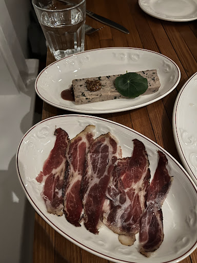 **CLARIFICATIONS ET UPDATE: Les produits locaux sont certainement mis à l'honneur, mais la plupart des assiettes, rapport quantité, qualité et prix laissent à désirer (ex. 20$ pour une assiette de 5-6 tranches de coppa de sanglier avec aucun accompagnement, ni moutarde, confiture, même pas quelques feuilles de salade, c'est un peu fort... 25$ pour 4 raviolis aux champignons, idem). Nous connaissons la valeur des produits, mais il ne faut pas abuser non plus. Certaines assiettes étaient excellentes, notamment la poitrine de pintade et gravy ou le chou au chocolat glace au maïs, mais d'autres étaient assez ordinaires versus ce à quoi nous avons été habitués. Ayant dîné à la Buvette environ 4-5 fois l'été dernier, je me souviens que les prix étaient tout de même plus raisonnables et la quantité des portions un peu plus généreuse à cette époque.
