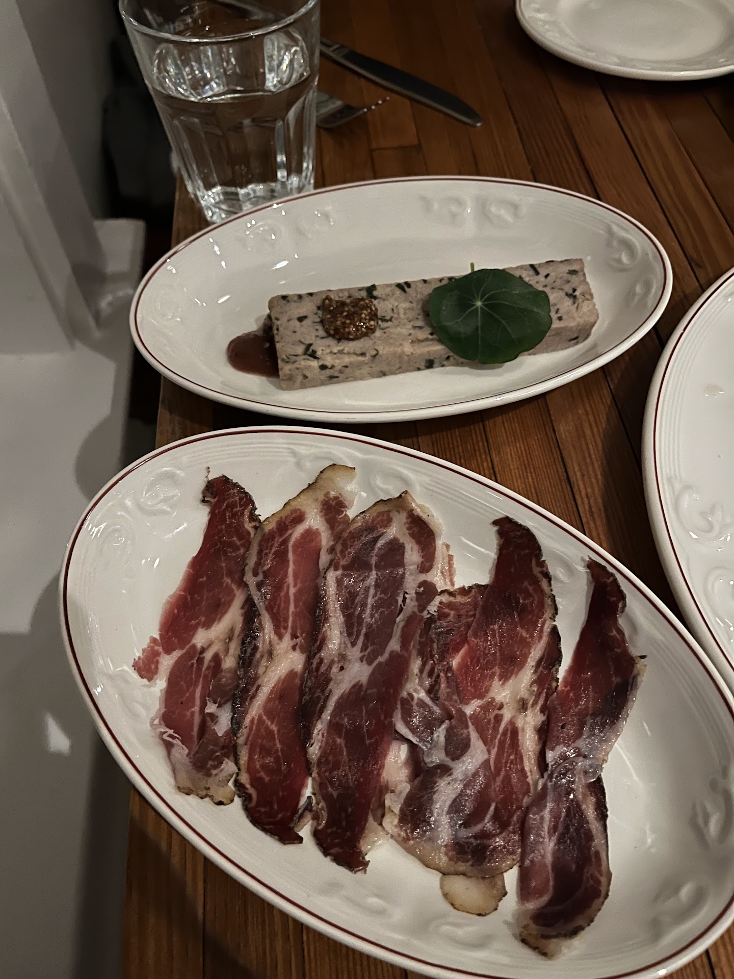 Vient le temps de commander nos assiettes. Nous mentionnons que nous sommes végétariens, mais que nous mangeons aussi des fruits de mer. On nous propose donc quelques assiettes (pétoncles, tataki, gratin de légumes, etc.). On reçoit nos assiettes, et quelle ne fut pas notre surprise que de croquer dans des morceaux de chorizo dans l'assiette de pétoncles.