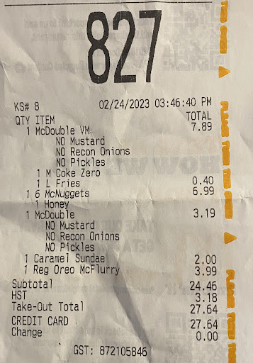 On 2 occasions, I ordered 1/4 pounder and big mac meals thinking as these are often ordered items so I wouldn't have to wait 20 minutes for my order in the "please wait over there" line and a 3rd time, I ordered a bacon and egg english muffin meal. No such luck in any of the above cases, every time, I'm directed to the "wait over there" line and the breakfast meal, after a 10 minute wait, was completely incorrect...I was handed an all dressed BLT sandwich, with only 1 1/2 slices of bacon on it. McDonalds has become nothing but an expensive disappointment these days . (Original post) I ordered a crispy McChicken BLT meal and this was my experience: After waiting in the drive thru line for 20 min, I was then asked to wait in the line up of cars already waiting for their food to be delivered to their cars. Twenty minutes later, I had to ask an employee where my crispy chicken BLT sandwich and fries were....about five min later an employee finally shows up with my food providing excuses "busy" "coupons" etc (this was at 9pm)....by this time I'm so hungry, I just want to get home (45 minute wait in total)...when I do, I find that not only are fries completely unsalted, I didn't get that crispy BLT chicken sandwich as advertised on the outside of the food carton...instead I got a chunk of flabby grilled chicken with a piece of rotten lettuce and flabby bacon. So...