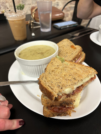 Read more1st and last time. My friend and I tried to order the soup and scone for lunch, they were out of scones, asked the server what the replacement was for the scone, there wasn’t any. So we asked if we could have a slice of bread with our soup, after consulting with her colleagues the server comes back and offers us a croissant or bruschetta with our soup, we said no the bread will be fine, the server tells us that bread is not an option. Weird because I was looking at 3 loaves of bread behind the counter and they have multiple sandwiches on their menu. Needless to say, the overall experience was very poor. Don’t bother with this place. We just left, no need to stay where you can’t be accommodated with a slice of bread.