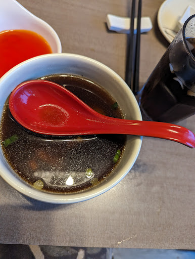 Read moreWe haven't been to the OK in years. Our neighbour told us that she loves it there, so we decided to give it another try. We went to eat in for supper. We were seated shortly after getting in the front door. They don't use traditional menus and gave us one take out menu for Chinese food and one for Japanese food even though we specifically said we only wanted Chinese. It was frustrating for the two of us to choose from one menu, so I got up and got another menu pamphlet from the front counter. We ordered a combination plate each and I ordered a wonton soup w/ chicken. The food came out in reasonable time. My issue was the spoon they gave me to eat the soup; it was a ladle like spoon (see photo). Every time I tried to eat with it, the broth dripped out of it. Sure, the ladle spoon was stylish, but I'll take functionality over style any time. Our food was really good and we had absolutely nothing negative to say about it. I'd eat their food anytime. Our waitress was pretty good and we had nothing bad to say about her either. The dining area is fairly drab but I have a feeling that they took their wall art down...