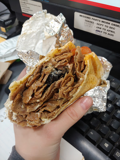 Immediately upon entering the establishment I was greeted by both the owner and multiple staff members. Cheerful smiles all around, and the owner explained to me how the menu works and his recommendations. The aroma wafting through the air was incredible, and just made my mouth water. I decided on my donair (Jimmy the Greek) and they quickly got to work making a work of art in a pita. It probably took longer for me to decide than it took for them to shave the 100% beef and create my donair.