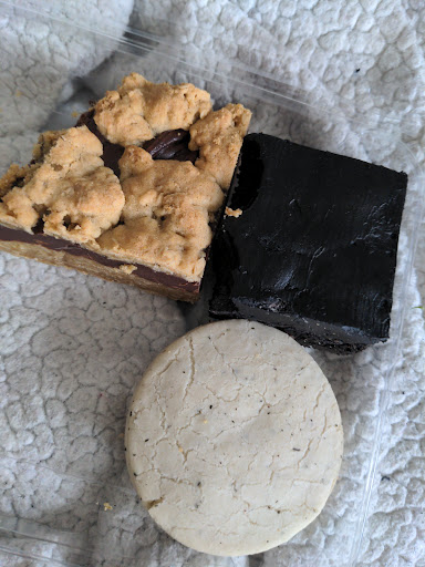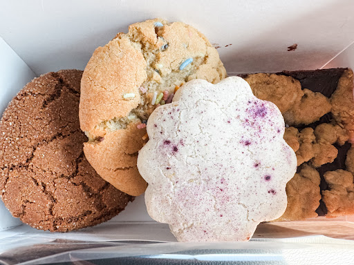 Read moreThis is a very small bakery, the only offer sweet treats and bags of flour mixes. None of the treats were labeled and I felt bad for the poor staff person having to list them all off. I purchased 3 cookies at $4.75 each. The regular chocolate chip, the lavender sugar cookie, and the earl grey sugar cookie. The only one worth eating was the regular chocolate chip cookie, it had a nice crumb, decent flavour, could have used more chips but a solid 3.5/5. The other two were gross. They were dry, kind of doughy in texture. They were not sweet enough to be called a sugar cookie, and they were too cakey to be called a shortbread. The texture was so strange I regretted buying them. Perhaps these cookies should have been labeled as "low sugar" or "experimental"? There are so many tasty gluten free vegan bakeries out there, BFL needs to up their game because 1/3 is not a good...