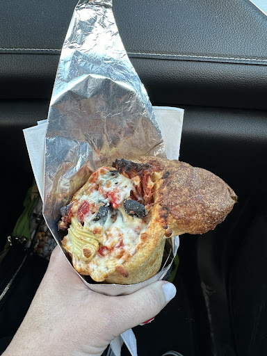 While visiting Kelowna we decided to get a pizza cone and it was delicious! I got a Greek one and my sister got a pepperoni. We were able to carry the pizza cone with us to the beach and it was still hot when we sat down to eat them. Would go here again and it was also kinda fun to have pizza in a cone shape :) The inside bottom of the cone wasn’t as melty as expected but it was hot and we weren’t actually expecting it to be great pizza so we were pleasantly surprised with the outcome. It’s not brick oven pizza and if you aren’t expecting that then it’s a good, quick, portable and tasty lunch option to go to the beach with. The man working there (maybe owner?) was so polite and kind. Very good service. Explained that the dough is house made so it isn’t a dry premade bread stick. It cost about $11 with a cone and a bottle of water. There’s also drink, fries, pizza combo for about $12 (July 2024) I’ll add my photo when I can find it, some of my trip pics seem to be lost in the cloud. There is a two seater bench across from the food stall but there is no other seating directly around it. There are public beach chairs about 45second walk away and a beach park with a picnic table about 4-5min walk away (picture of the...