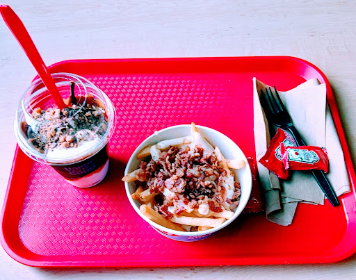 Read moreThe ice cream here is delicious as you might expect. Giving a 3 stars because on more than one occasion have I seen a hair in my food or it's been undercooked. Wish they still had smartie blizzards. M&M blizzards are not the same. Recommend the ice cream, but only cautiously recommend the food. (When done right, it's excellent for fast food.) Most of the time the staff is tolerable. Did have one experience where everyone seemed more miserable than usual. The lady at the counter told me to go sit down and wait for my ice cream, I thought it was unusual but I did. A guy brought the rest of our food but no ice cream, so I asked if it was on it's way. He goes, "You don't sit for your ice cream. You wait at the counter!" I said, "I'm sorry, the lady told us to sit." And he said "Yeah, I'm sure she did." and walked away to get the ice cream. I was going to put in a complaint but my 3-year old nephew smeared ice cream on their window and I figured...
