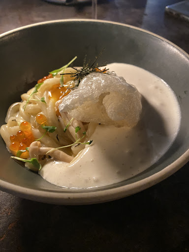 The menu appealed to us prior to visiting because of its interesting blend of Asian and South American fusion. The execution was super. We liked if not loved each and every dish we ordered. Highlights and musts: duck wings. Wow! Meaty, unctuous, flavourful. bone marrow tacos. Wow! Tacos served w a canoe cut, roasted marrow bone. Do a luge after! -Korean short ribs. What a great meal / entree to share! Great portion. drumroll please… UNI UDON CARBONARA! See photo. It’s amazing. (However while the chicharron looks great on it, I’d replace with a more substantial piece of fried portk skin from the belly as these light ones get soft too quickly).
