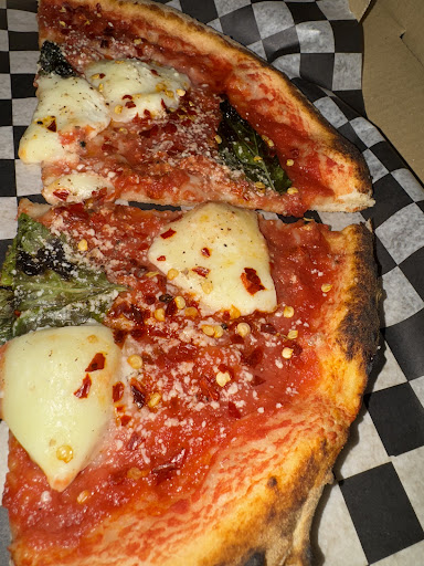 The crust, with its crisp, charred edges and tender center, serves as the perfect base for the vibrant toppings. Fresh mozzarella melts beautifully, offering a creamy, rich texture that contrasts delightfully with the tangy tomato sauce. Each bite is enhanced by the aromatic basil leaves and a hint of olive oil, delivering a harmonious blend of flavors that highlights the essence of traditional Italian pizza. This dish exemplifies how expertly chosen ingredients and skilled technique can create a truly memorable culinary experience.