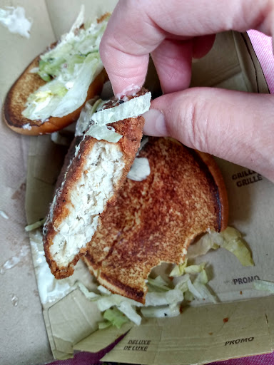 Read moreWhat a disappointing meal. I don't think anything can be so disgusting as the meal we had today at this location. The restaurant was closed I guess due to not enough workers. So you had to go through the drive-thru , we ordered and proceeded to the first window which I don't know if they even understood the order it wasn't that hard. I had ordered the new chicken mccrispy and my husband had ordered a quarter pounder no cheese. We got to the pay window and she said no cheese and we said yes no cheese and said something that the chicken had cheese on it which it does not we paid got our order and went and parked. I opened my chicken and was thoroughly disgusted it was an overcooked blackened piece of chicken maybe even a day or two old who knows it was uneditable but I was not able to even go into the restaurant and complain because their door was locked see the photos I have posted. I'm glad this was just a restaurant we stopped in on our way through Kelowna. I think we should have driven to another restaurant instead. The add doesn't even look like the...
