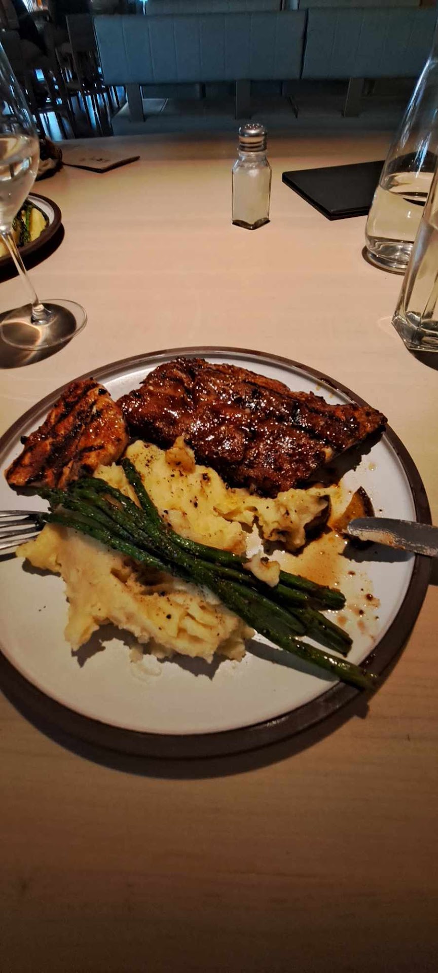 Read moreI normally would not have anything at all bad to say about this place at all!!! But I went with my 7 year old daughter. She ordered the salmon from kids menu which was amazing ..but she didn't want veggies and potatoes. So she order fries. The server, Trevor, decided to make it a double order of fries (I guess cause she didn't want veggies?) And it came with an abundance of fries and one tiny piece of salmon which was unappealing to a small child's eye. She ate the salmon but the amount of fires on her plate was ridiculous. Like no adult would eat that much. Let alone a kid. He barely came to our table to serve us. I had a steak and didn't even get a steak knife. The steak was amazing though. The food is always great here. And normally the service is beyond amazing. But tonight I didn't feel that way. It wasn't even that busy. Sorry but I'll be making sure we don't get Trevor again. 😔 I felt ignored. And it was like he didn't care at all about our wants or needs. Normally a server would notice a small child and realize she won't eat two servings of fries . I'll still come here ..just choose a...