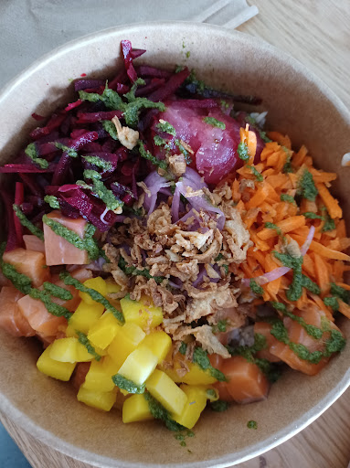 We called ahead to check if they offer cooked salmon for their bowls (my girlfriend cannot eat raw fish). I was told that yes, this was an option. Therefore, we decided to try out this location, but upon arrival we were informed that they do not in fact have cooked fish. I'm not sure why we were were told this in the first place, very disappointing. Therefore, my gf had to order an alternative protein. She ordered the chicken which appeared to be boiled and had a very strange texture. She lost her appetite from it and could only eat a couple bites.