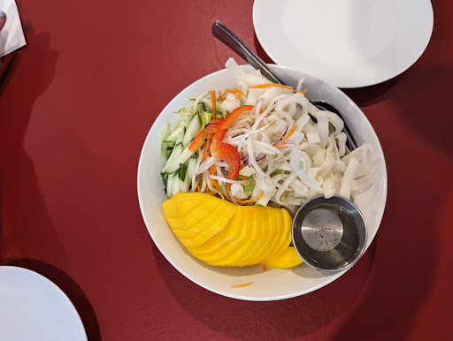 We expected the mango salad was unripe green mango tossed in some kinda signature sauce, and what we were served was not what we tried before - ripe mango with deep fried crispy pad Thai noodles. We also ordered pad Thai, pineapple fried rice and a mixed veggie stir fry dish with vermicelli - the most outstanding smell and taste we found were the fish sauce. Although we all are fish sauce big fan, but we did expect a balance. Again, everything was not bad, it was just not what we have experienced before.
