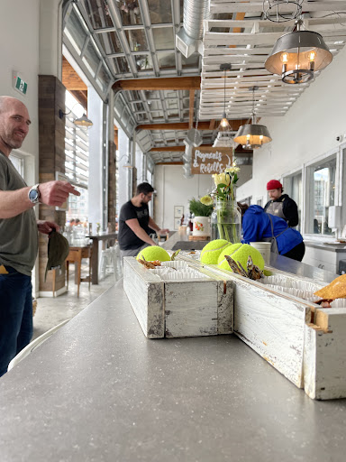 If you had asked me a year and a half ago I would have given rustic reel 5 stars - I don’t want to complain about it because it’s an amazing atmosphere and I can really tell the owners put a lot of care into it and I really want to love it, because we used to love it so much but some changes have taken place that I would want to know about if I was the owners - although it’s stilll such a cool atmosphere I want to explain why we have stopped going in hopes to see changes so we can come back soon . My husband and o used to go literally every couple weeks we loved it there - then they shut the previous coffee shop - the local chemist inside - my husband is a coffee snob extraordinaire and the local chemist was hands down the best coffee in Kelowna . When they shut it and replaced it with a different coffee shop the coffee became subpar at best - it’s very basic coffee - they Went from an excellent product to a much lower quality - it’s clear the same knowledge about coffee is just not there - it was disappointing and we stopped really going because bright jenny’s is around the corner and does have amazing coffee and there’s another great brewery around the corner with live music . The pull to come in all the time and have coffee a lunch and cider was done - What rustic reel had though that stayed with me was the best gluten free chicken sandwich in town and an amazing plum basil cider - sadly they no longer have the cider due to bc tree fruit closing so they have an apple cider like everyone else and they changed the gluten free chicken sandwich - it’s no longer made with the same gluten free bread it’s made with a bun now that is neither that good and where the actual chicken doesn’t fit it - they took something special and made it not work . We went today and the chicken just wasn’t nearly as good as it used to be either and the bun was really disappointing - quite dry , and to be honest I wouldn’t order it again because of this change (though the fingerling potato’s are still a 10/10!) While I will always love rustic reel and their community vibe and great atmosphere these little changes probably have made it so we will be once a year visitors as opposed to every couple weeks… I hope they make some changes as we do love the atmosphere but honestly the big draws are gone for us and the service today took so long for them to even acknowledge us which didn’t help ! We are cheering for you rustic reel and hope to see some positive changes so next time we come back we will be drawn into becoming regulars again ! Best of luck ! You can do this !...