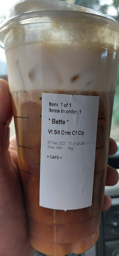 Read moreI have visited this location twice. Nothing significant the first time over a year ago however my recent experience was a little odd. I ordered a London fog, once I got my drink I had to check inside the cup as I did not see two tea bag tags hanging out the side of the cup as I normally would. Lift lid, confirmed, they're in there. Let the team steep for a little bit. Then I went to take the bags out & come to discover that for some reason the barista had put the entire string and paper tag inside the cup to simmer around with my tea!?! Wut? Who does that? Needless to say it was a bit...