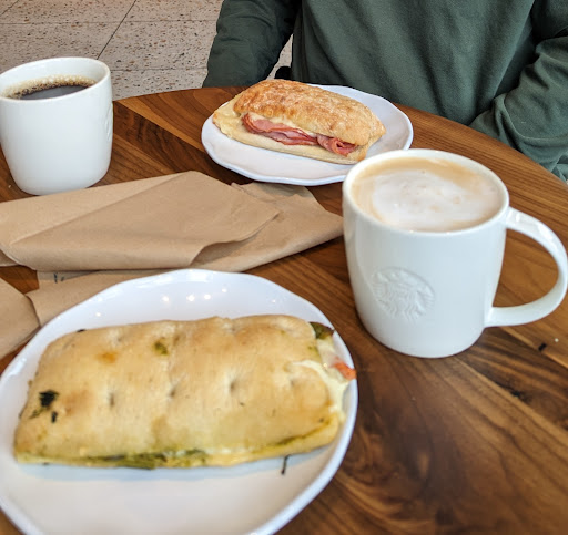 Read moreThe man cleaning the eating area was wonderful, the gal from Spain that took our order was nice and friendly, the first gal that was making drinks was super friendly. Kayla, however was not as kind. A drink was given to the gal that ordered after us, so I asked if mine was coming and received a short snap of a reply. I want to say, they were FOR SURE busy. I would have never asked if the gal behind us didn’t get her drink before us. Other than that, nice new Starbucks. My drink wasn’t the best, but still...