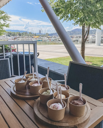 Read moreHow excited we were to discover that thereâs actually an outdoor cafĂ© along the waterfront by the Yacht Club thatâs open to the public! While we didnât need to take advantage of the fire places located around the patio, itâs good to know theyâre available on chillier days. The view, of course, is spectacular, and staff very friendly. Food was delicious and thrilled to see vegan options. Itâs a walk up counter inside with outdoor seating only. The perfect spot to enjoy their scrumptious gelato (favourite flavours include chocolate, pistachio, salted caramel) Thanks to Andrew from A Taste of Kelowna for introducing us to this...