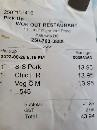 Read moreI viewed the wok out website menu, then called to place an order for delivery. Found out each individual dish I wanted was actually 1 dollar more than advertised. (Strike one) Then I was told that delivery over 5km was free but zi was 5.2km.. so delivery would be 3 to 4 dollars.. I asked is it 3 or is it 4 dollars for the additional .2km.. she said again delivery charge is 3 to 4 dollars. (Strike 2)