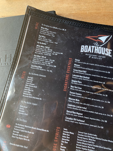 Read moreNew owner of Boathouse and it's still a great location, literally hanging over the Lake of the Woods. We got in no problem and seated right by the Lake, albeit still frozen ice, still a great view. The waiter was very good and provided drinks right away. Even found the last bottle of a specific wine for us and got it chilled quickly then served in an ice bucket. He covered most of the restaurant until it started to fill up. More staff appeared and everyone was served in a timely fashion. Service was prompt and the meals were good and nicely presented. Soup and salad were served very soon followed by the mains in a reasonable time. Two meals were right out of the oven a nice and hot. My steak was cooked perfectly to my order and nicely seasoned. A good cut of beef with lots of veggies and delicious mini potatoes. The peach and cherry crumble was excellent, freshly made and piping hot with a good scoop of ice cream. There is a small bar to sit at and in warmer weather theres a large deck with umbrellas over most tables to dine outside. A good choice for a meal on Kenora.