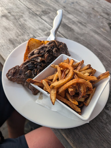 30 minutes wait time to be seated. So we were like okay, must be a good place. Took 50 minutes for all of our food to come; 6 meals + 1 shareable. Two starters for two individuals came out around 30 minute mark. Server did not offer a high chair. Server ran after us to charge us the group gratuity. This was after we paid and already in the parking. Apparently the manager voided the group gratuity in the first place. Why? It is if the party is 8 or more. We have 1 infant who sat in his stroller. 1 toddler who did not order food nor high chair nor water. Literally just sat with us. So they considered the infant as someone that got their service. When there was zero. The server said after running up to us that the grat is for groups of 8 and then he looked and realized one is an infant and proceeded to say groups of more than 7.... Dude same thing. Asking for refills is a wait. Basically everything. Saw our server came out couple of times, after I asked for a container, which took him at least 10 minutes to get. He even went to our table again to check in on us. That another server came up and offered for a container. In our wait time, 3 different group of eaters left. One came before us. One at the same time. One came after us. We were a group of 6 adults and the group that came after us was a group of 4. They managed to arrive after us, order after us, but receive the food before us, finished eating before our last member got their food. I find difficulty in understanding why it was such a stark difference between us when the group sizes were not much different. Isn't it that the kitchen cooks the food based on the order arrival. The one that took the longest to arrive was the burger... A burger. The atmosphere is just meh, just a patio, pretty dirty. Narrow hallway. Would not say this place is accessible at all. Someone got sick after eating the lobster bisque. Someone ordered the steak sandwich. It was a thin slice of beef on a slice of toast. Small portion too. Sandwich.... Was not. Food was okay, not something to rave about. For more than $25 per order, you would assume the fries are wonderful and thick cut. Nope. Flimsy and tiny. It was like the store bought frozen fries from the grocery and called it a day. Costco fries are better.