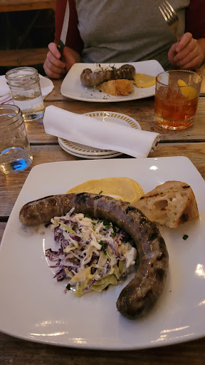 Our server was super friendly and attentive. With our water came complimentary curry popcorn—a fun and tasty touch. For food, we went with the happy hour specials: the bratwurst and the signature Negroni. The Negroni was excellent—balanced, smooth. Honestly, I was expecting a basic snack-sized meal, but this was the opposite. The sausage tasted homemade, the slaw was fresh, even the bread tasted like it came straight from the kitchen. And yes—the proper hot mustard was served with it!