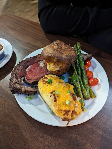 Read moreAtmosphere was very cozy, came on a Friday and had live music available. There are pool tables and a bar, and a seperate dining area. Drinks were amazing, especially the blue raspberry lemonade!! 😍😍 The food was good but not amazing.. the prime rib sandwich had way too much horseradish sauce and not enough meat (that wasn't pink anymore at all btw) unfortunately, but the regular prime rib dinner with asparagus and a baked potato was pretty good! Candied brussel sprouts had a lot of burnt bacon bits but tasted good overall. I would say the atmosphere is amazing, service was excellent, but the food is a bit overpriced in my opinion.. 😅 On another note, I do wanna mention a "program" they offer where you can pay $15 for a purple heart to pin onto the wall, for someone in need to take and receive a meal in return. I'm all for that!! ☺️❣️ Overall I was happy with my experience and I think I would come back to try something else of the menu if ever find my way back to...