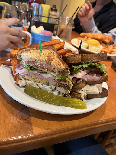 Lots of parking. Lots of seating. I ordered a triple threat chicken club. Really it was a great sandwich. My only issue is the toast was over done that I should have sent it back for being burned. I ate it . A triple decker sandwich has enough going on that I didnt notice the dark toast.