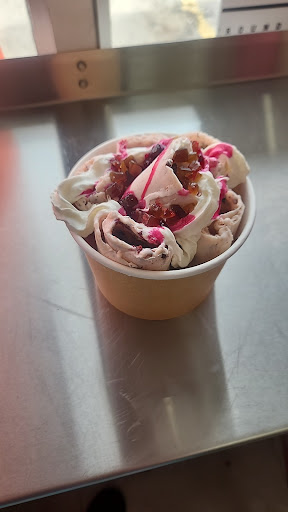 This was our first visit to Kincardine, and our first time trying rolled ice cream. It was worth the wait; absolutely delicious! I love the variety in the types of flavours offered too: fruity, chocolatey, nutty, and even even some Indian flavours! We tried the chocolate peanut butter, strawberry cheesecake and pistachio. My step-son's eyes were SO big telling me how they used a real slice of cheesecake for his serving! The husband and wife owners were very friendly and we wish them the best of luck...