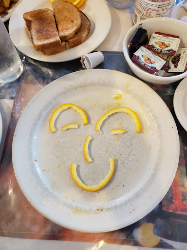 Read moreThere's 2 separate sides to this restaurant. One side has a very pared down 'diner' feel (not fancy at all) with an actual counter with stools, along with regular tables all kind of placed sporadically throughout the big space .. and the other side has a more bit more 'dining' type feel with red matching tablecloths (all covered in plastic) and a fake fireplace on the one wall. Bright room from all the windows right round both spaces. Went on Father's Day last week. They were very busy (a bit in the weeds as they say in the business) and the staff (maybe all family?? LOL) seemed a bit stressed and were raising their voices at each other. I was starting to get a bit stressed myself (having been in the business before) but the food arrived and it was really good! Eggs, over easy .. done perfect, sausages (a bit too sweet tasting for my liking but still good), plain crispy friend home fries (no spicing .. just plain but again OK), toast (buttered properly LOL) and served with a generous size of fresh fruit cup (very good blend of oranges, melons, cantaloupe, grapes, blueberries!!) . My husband had a Western Omelette with cheese that was so large he couldn't eat it all .. also because he liked the potatoes home fries so much LOL... served with a fresh fruit cup also. We will definitely be going back. Not fancy ... but very good!! .. and large enough I'm sure they can handle larger groups and a good...