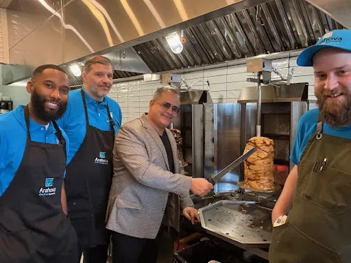 To celebrate this exciting new location, my friend Mike Cohen and I stopped by for a feast. We were both in the mood for something hearty—what you might call a "loose meat" kind of day. Mike went with the chicken gyro plate, a generous serving of perfectly marinated, spit-roasted chicken served over fragrant rice with a side of crispy golden fries. Of course, no Arahova meal is complete without their famous tzatziki sauce—cool, garlicky, and downright addictive, it brought everything together beautifully.