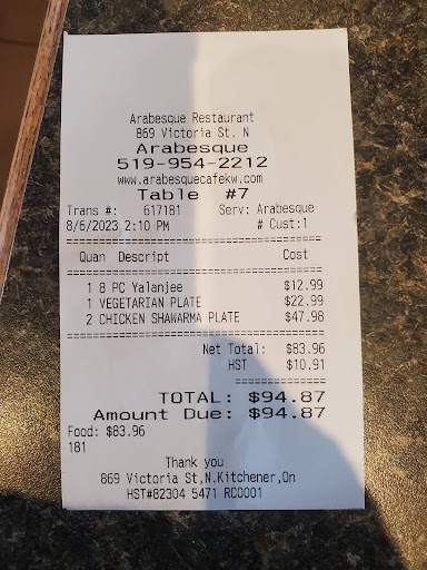 A Heartbreaking End to Over a Decade of Loyalty! I don’t often write reviews, but today I feel compelled to speak out — not out of anger, but out of deep disappointment. I’ve been coming to Arabesque Restaurant for over 10 years. It’s a place that has felt like home to me and my family. I’ve recommended it to friends, always confident that this restaurant would deliver both in food and in spirit. But today marks the end of that long, cherished chapter. I drove 16 minutes today to pick up my usual: a chicken shawarma wrap. When I walked in, the first thing I noticed behind the counter was a young man, seemingly in his 20s, leaning forward, completely focused on his cellphone. He was wearing a hairnet and black nitrile gloves — seemingly prepared for food handling. I greeted him twice, and both times was ignored until I jingled my keys to get his attention. He finally looked up and asked how he could help. I placed my order, paid with cash, and watched in growing concern as he handled the food. What disturbed me most was that the same gloves he used to handle his phone and my money were then used to prepare my food — without any change or even washing of hands. He took my cash with gloved hands, gave me change, and then immediately began making my shawarma, handling every ingredient. No glove change. No hand sanitizing. Nothing. It was disheartening. I’ve trusted this restaurant for years, but food safety is not something that can be compromised — not ever. Cross-contamination from phones and money to food preparation is dangerous and unacceptable. Someone could get seriously sick. I shared my concerns with an older man who came out from the kitchen — possibly the manager or owner — and explained everything that happened. But the damage was done. I left without my food, because I could not bring myself to eat it. I won’t be coming back. To the management: you must take this seriously. I’m not just one upset customer — I’m someone who’s supported your business loyally for over a decade. I’m saddened to say goodbye, but I refuse to risk my health or that of my family. This experience has made me lose trust in a place I once loved. I will be sharing this with my friends and family who used to accompany me here. Please train your staff and uphold the basic standards of food safety. — A loyal customer of over 10 years,...