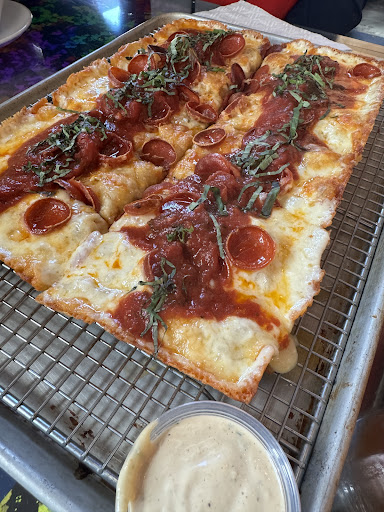 Thier Detroit Style Pizza (a rectangular pan pizza with a thick, crisp, chewy crust) are made fresh with hand-stretched dough, and topped with local Brick + Mozzarella cheese. A small pizza is 4 squares, medium is 6 squares and large 8 squares; personally I am a big guy and have a healthy appetite and I couldn't finish my medium pizza.