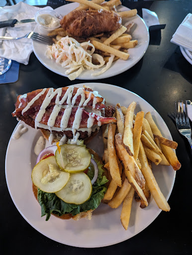 The only reason this place got 3 stars is the food is good and plentiful and our server was very friendly and attentive. Upon arrive inside there was a sign "wait to be seated" but a waitress told me to sit anywhere...so why did I have to wait? I did try to make reservations but only got answering service and no one followed-up. Upon arrival when I inquired about a reservation I was told no one monitors voicemail...so why even have it??? Make an online booking system or don't advertise you take reservations. As someone who is physically challenged the entrance was not to safety code standards for the ramp. Had there been any ice/slippery conditions or someone with a wider wheelchair the ramp was dangerously sloped and very narrow and had no railings . Once inside only platform booths and high bar tables on lower level...so where would they be able to even accommodate guests with wheelchair? Even anyone with cane or walker would be challenged with seating. High bar seating should be upstairs and tables on main level for better accomodation of all guests and actual diners not bar goers. The volume was quiet loud with all the TVs so everyone was shouting to talk. Not an environment to be able to easily socialize with friends while dining. The atmosphere is dark and dated and really could use a facelift. It hasn't had much done since it was Whiskey Jacks that is an improvement. If you are looking for a tired, loud sports bar atmosphere only and not looking to socialize and connect with friends this is your place. Sorry to say but not a place I would return to even though food...