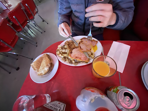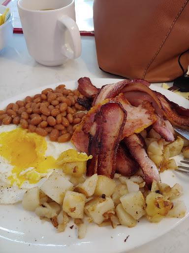 Read moreOkay here is an unbiased review and I don’t care who I offend but it’s good, it’s good. If it wasn’t good I would not be bothered to do this unless it was really really bad. I read some reviews and I have some things to say about some of the reviews. You can’t call a restaurant a greasy spoon or a classic dive when the food is so fresh and the premises spotless. When you first walk in you’ll see it’s bright and freshly painted. Memorabilia from the 20’s to the 50’s from May West and Marilyn Monroe to James Dean. Retro furnishings including these 50’s tables that Martha Stewart did a whole show on. It has a real warm homey feel. So let’s talk about the food!!!! When you first walk in you will see two water coolers one with spring water and the other distilled. So go and grab a glass from the side bar and help yourself and drink some fresh pure water as much as you like. If you like the water you can also buy the water in the 5 gallon containers kept at the front. Most of the locals come for the breakfast, just wait until I tell you why. First of all everything is farm fresh. The bacon they get is straight from the farm; whole slab bacon that they slice right there on the premises the slices of bacon are thick and meaty and crispy 2” x 7”, I measured it, Lol. Some people like their bacon very crispy and some not so crispy so make sure to specify from very crispy to semi-crispy. I like it very crispy. The back kitchen door is always open and often you will see them slicing it. You get 4 large slices of bacon with your breakfast. Eggs are fresh from the farm and you can really taste the freshness. The tomatoes are fresh from the farm and they usually put 2 big slices on your plate. The potatoes also come straight from the farm. The potatoes are; rolled, peeled and sliced right on the premises and that is why people come for the breakfast. They also include a side of homemade coleslaw, I like it in a paper cup. Last but not least you get 2 slices of whole wheat toast buttered. Enjoy a nice cup of spring water coffee for yourself. The coffee is at a cost of just a $1.25. You should help yourself, just grab a cup and pour yourself a bottomless cup of coffee. So this is arguably the best Five ‘Star Breakfast Equivalent’, by far and it should be quite expensive right? Wrong. Would you believe $5.95 and believe me they fill up your plate so come hungry. Just so you know it does get really busy on the weekends and sometimes there is a wait line but it’s worth the wait both in quality and in value. The cooks are Frank and Carol and they are the reason why people keep coming back for the beautiful breakfasts they make. If you think this review is biased come in a try the breakfast for yourself. Please keep in mind that the hours of operation are from 7:30...