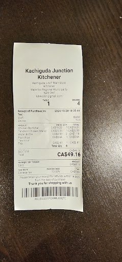 Read moreDrove to Waterloo from Mississauga on a personal work and stoped by Kachiguda Junction. I must say this place serves better food Than most restaurants from Hyderabad. We are frequent diners from quite a few restaurants from Mississauga, Brampton. Etobicoke, Scarborough. Most can't match the quality of Indian food served here. This one from Waterloo area really stood up.. Many of the restaurants in GTA should go here and understand what indian food is..