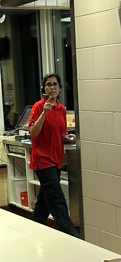 The employee who took our order was more interested in her energy drink, texting on her phone and not messing up her acrylic nails. She was seen several times drinking her energy drink which is not sold at KFC behind the counter. She seemed to be hiding it along with her phone behind delivery bags and a cleaning bucket the had been left on the counter.