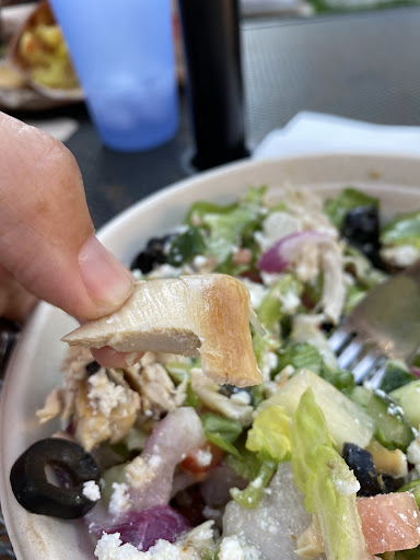 Ordered a Greek salad, add chicken. First of all, came to over $15. For a âfast foodâ joint this was appalling as I get fresh made (better quality) salads in sit down restaurants for cheaper.