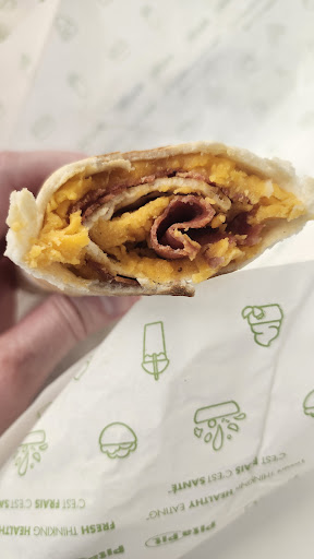 We were at Conestoga yesterday for provincial volleyball tournament. We had a 1hr break in between games for lunch and we spent over 45 min in line at this Pita Pit (which was the only food option in the Rec centre) and they only had 3 people working, and they were SO SLOW. They were not staffed properly to serve hungry girls exercising hard and they spent time standing in line vs resting. Then on top of that, the food was awful. This is a pic of their pepperoni pita twist that was made with cheddar because they ran out of mozzarella and was half warm so half the cheese melted and the rest was cold and chunky, tasted so awful, I threw it out after one bite. I was not going to stand in the long line to get a refund. It would have been faster to drive off site to get better...