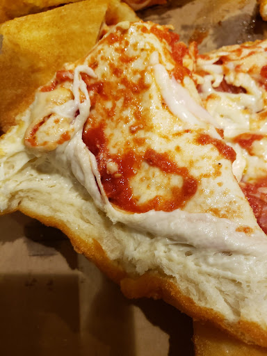 While the staff seemed friendly enough, we ordered 2 panzerottis, got them home and began eating them, only to notice that inside each of them was A LOT of raw dough. From the picture you can see how much of the dough was raw, and it kind of looks like cheese. We called Pizza Pizza back (central processing, not specifically the store) and they said they would have the restaurant re-make them for us properly. I confirmed that they would be cooked all the way, and the person I spoke to assured me they would. When I arrived at the restaurant to pick up the second round of panzerottis, the man making the pizza commented that the panzerottis would basically be the exact same as they were before (uncooked dough throughout). He then asked if I wanted them baked instead, but it was unclear why he would need to bake them to get them cooked and so I said no. In the end, I requested my money back, which they agreed to, but not before he tried to convince me that uncooked was the only way it could be and that many people are happy eating them that way.