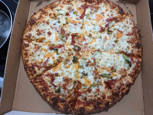 Read moreThis is my first and last time eating at this restaurant. I got pizza (with two cheeses, broccoli and roasted red pepper, mind you I didn't mean to add the cheddar cheese), chicken wings and cheesy sticks.