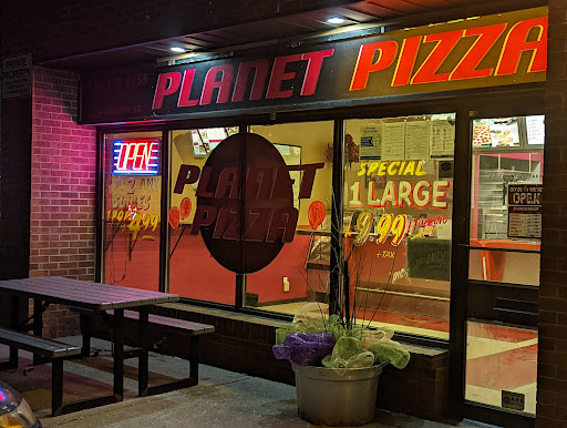 THIS IS NOT PIZZA PLANET! They just haven't bothered to update anything, we just wasted money on something I couldn't eat and I am not picky. Firstly The person taking the order was hard to understand and the whole order process took way longer than it should have for a Canadian and Hawaiian and large wedges... Pizza is generic and the hawaiian tasted off, tried it with the pineapple on and then just a piece of pineapple and it tasted like a old boot or worse, then I tried without the pineapple it was gooey and weird... Just like the rest of it that I couldnt even eat it....The wedges look like they were fried for the half an hour we waited for the order. They also looked like it was cooked in a oil that's never been changed, you know that dark colour with no potato inside and then salted to death..also supposed to be a large not a small in a large box and I'm definitely not eating this heart attack. hahah I'm sad because we love pizza and wedges so it was a huge disappointment. I will not be coming back even for the free wedges offered. I posted a picture of the so...